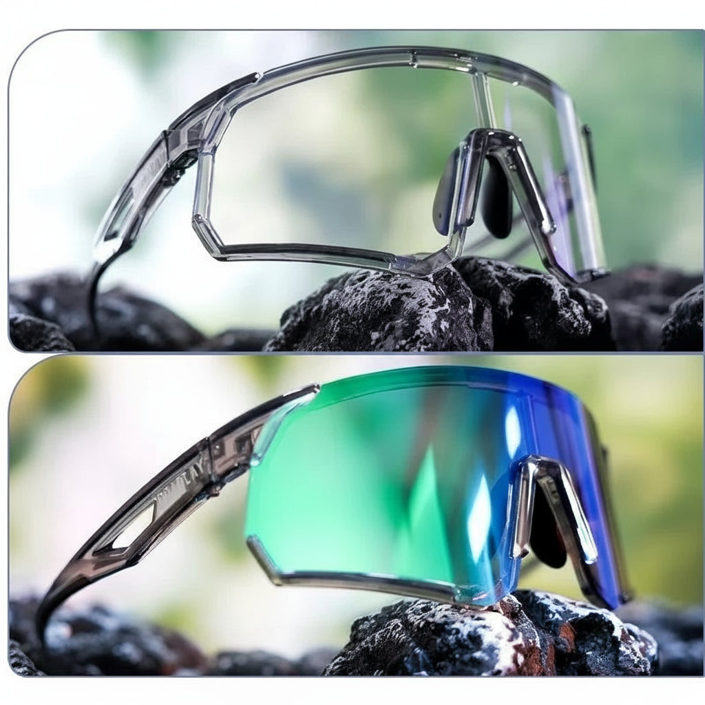 Óculos de sol ideais para ciclismo, mountain bike e atividades ao ar livre. As lentes fotocrômicas em policarbonato se ajustam automaticamente à luminosidade, oferecendo conforto visual e proteção UV. A armação em TR-90 é leve, resistente e flexível, garantindo ajuste seguro e durabilidade. Modelo unissex, perfeito para homens e mulheres que buscam desempenho e estilo em esportes ao ar livre.
