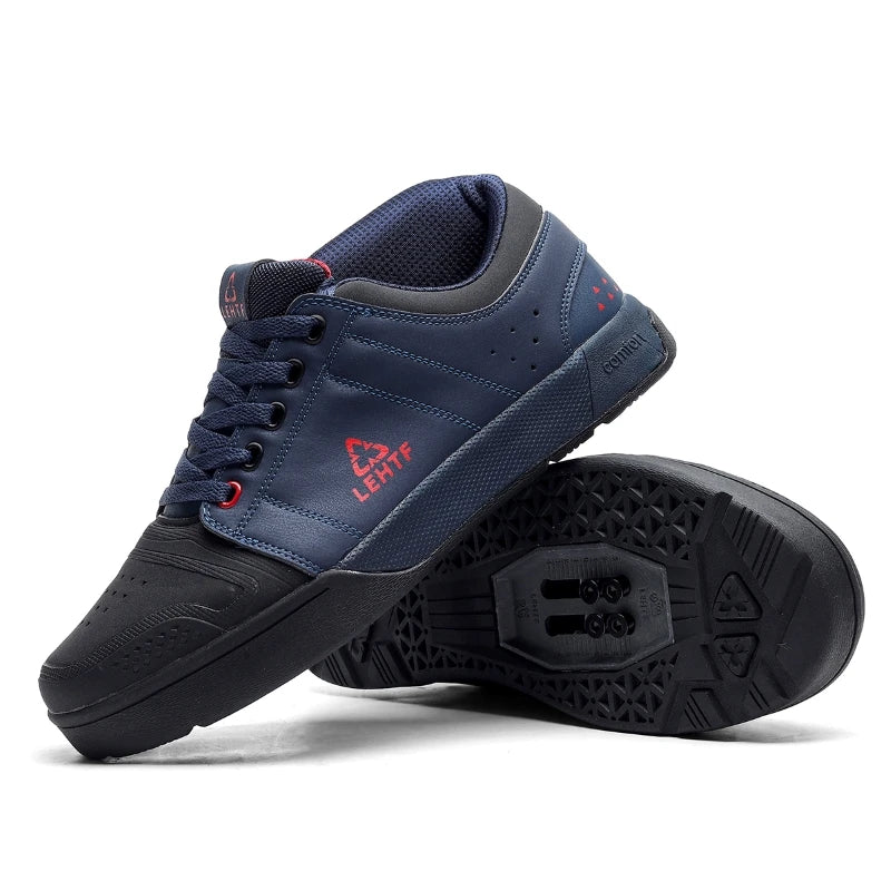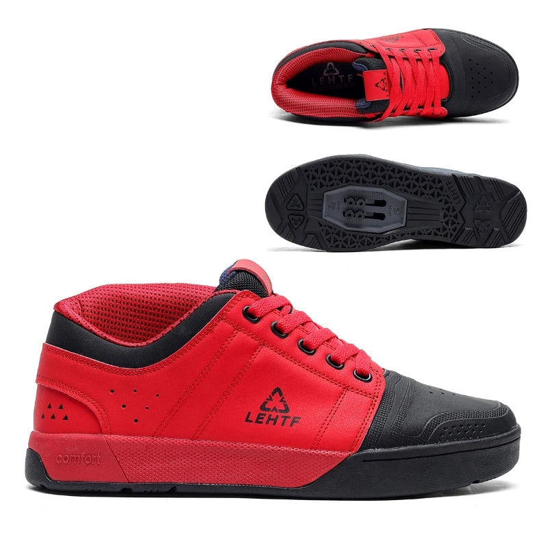 Calçado para ciclismo e atividades esportivas. Parte superior em malha grossa, palmilha EVA, sola de borracha, forro em tela. Fechamento por cadarço. Ajuste menor que o habitual (ver tabela). Largura média B/M. Sem marca.
